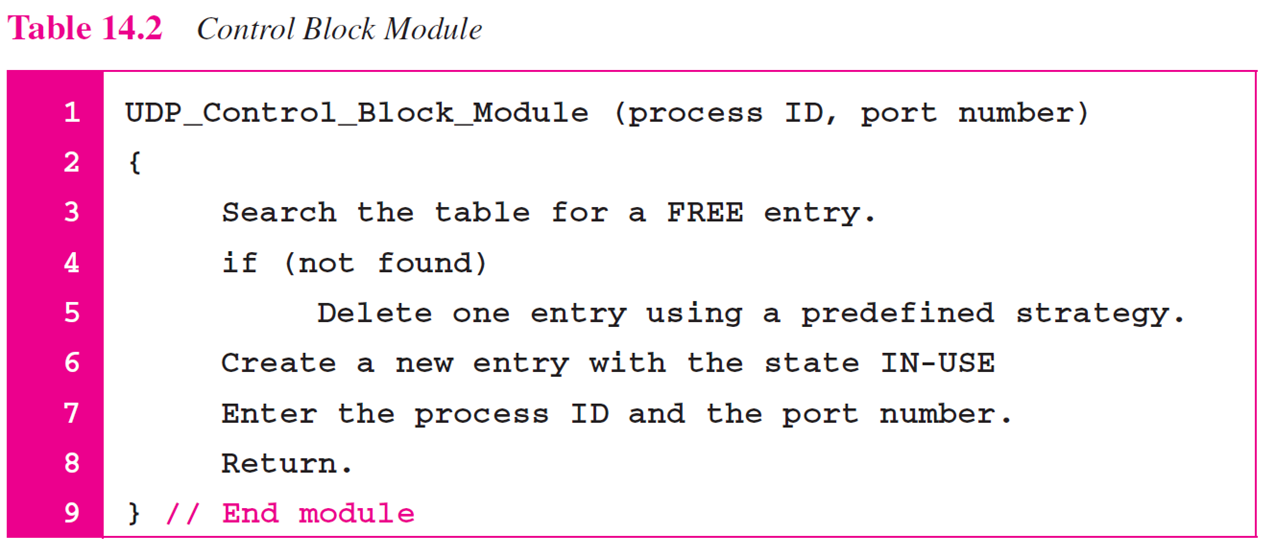 - 빈 table이 있는 경우 IN-USE 상태의 process ID, port number를 포함한 entry 등록