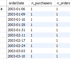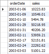 orderDate(판매일)의 포맷형식은 'yyyy-mm-dd'이다.