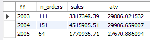 sum(B.priceEach*B.quantityOrdered) / COUNT(DISTINCT A.orderNumber) atv