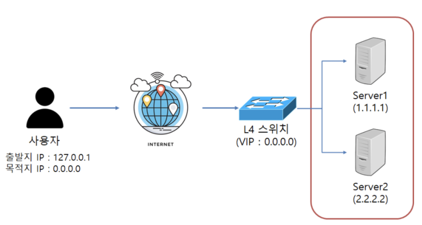분산 알고리즘은 Round Robin 등 L4에서 설정한 알고리즘을 따르게 된다.