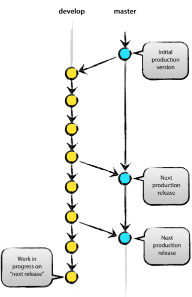 The master branch, often referred to as the main branch nowadays, is managed to hold only the versions ready for release. Each commit in this branch records a release number.