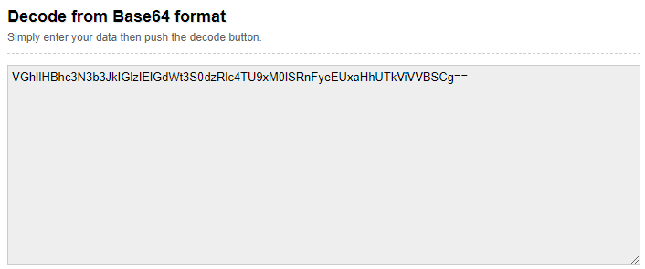 VGhlIHBhc3N3b3JkIGlzIElGdWt3S0dzRlc4TU9xM0lSRnFyeEUxaHhUTkViVVBSCg==