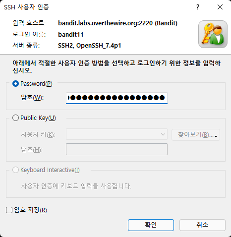 data.txt 파일에서 정렬을 하고 중복을 제거해서 출력해보면, 1 UsvVyFSfZZWbi6wgC7dAFyFuR6jQQUhR 줄에서 패스워드가 출력되었습니다.