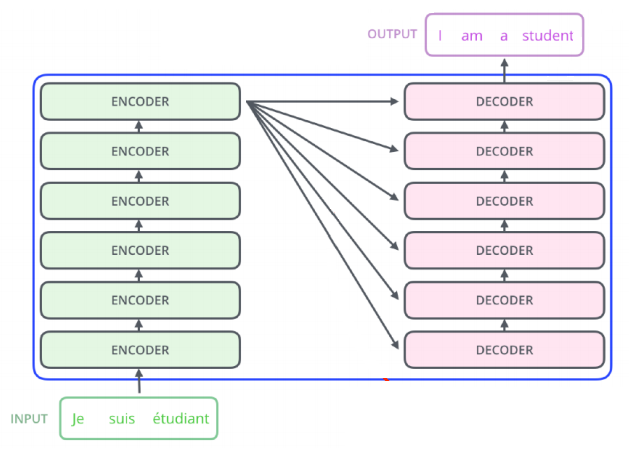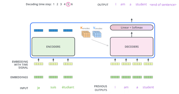 transformer는 key vector, value vector를 보내게 된다. decoders에서는 하나의 단어씩 autoregressive하게 출력하게 된다