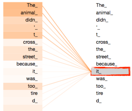 이 문장을 이해하려면 it이 어떤 단어에 dependent한지 알아야 한다. 즉, 단어 자체를 이해하는 것만이 아닌, 문장 속에서의 단어들과 어떤 interaction이 있는지 확인하여야 한다.