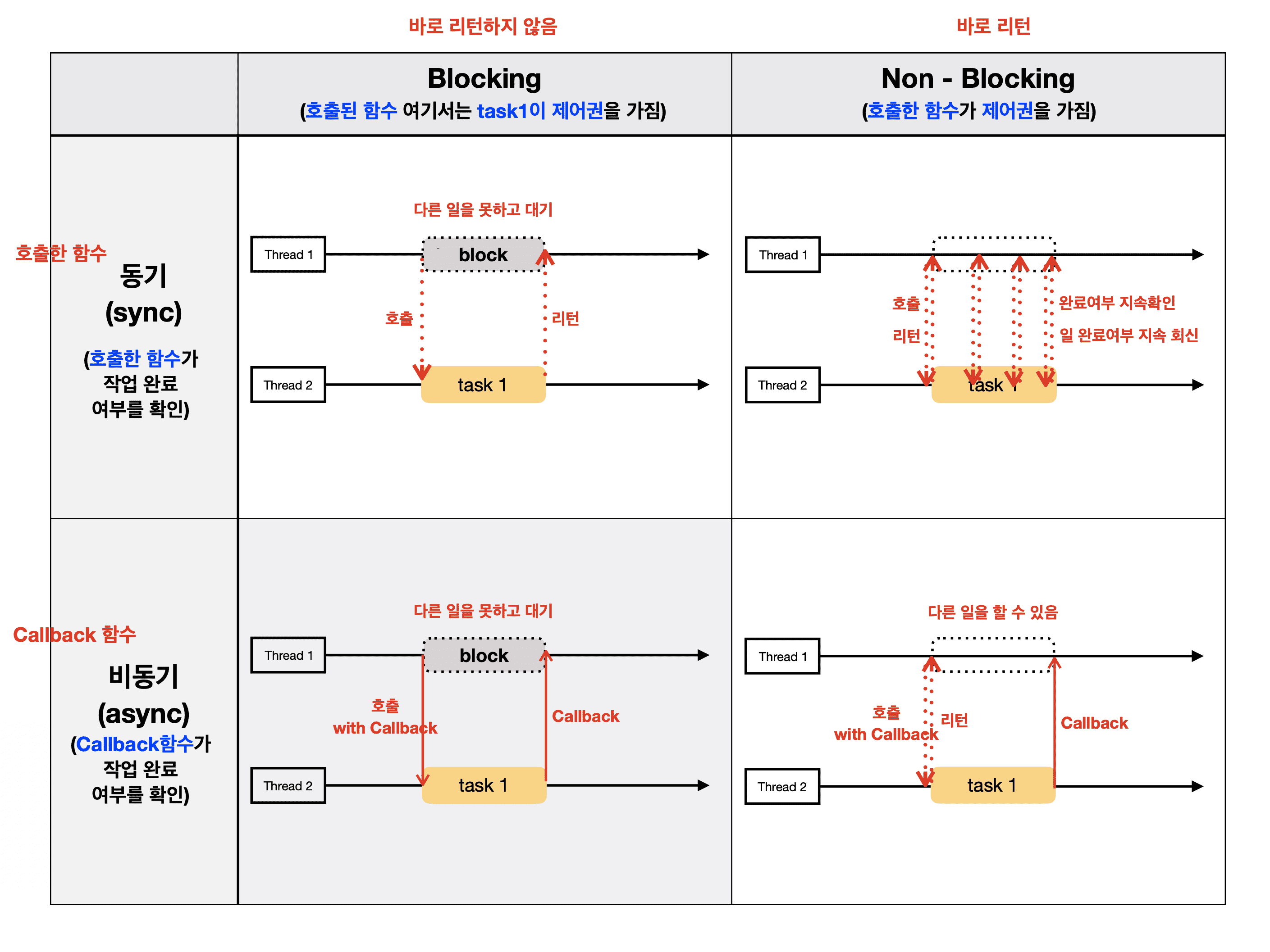 호출된 함수가 즉시 제어권을 반환하여, 호출한 함수는 바로 다음 작업을 수행할 수 있습니다.