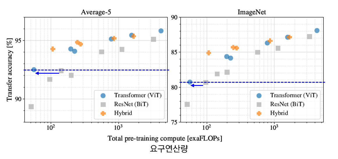 - hybrid의 경우, 연산량이 증가하긴 했으나 ViT보다 더 좋은 성능을 보여줌