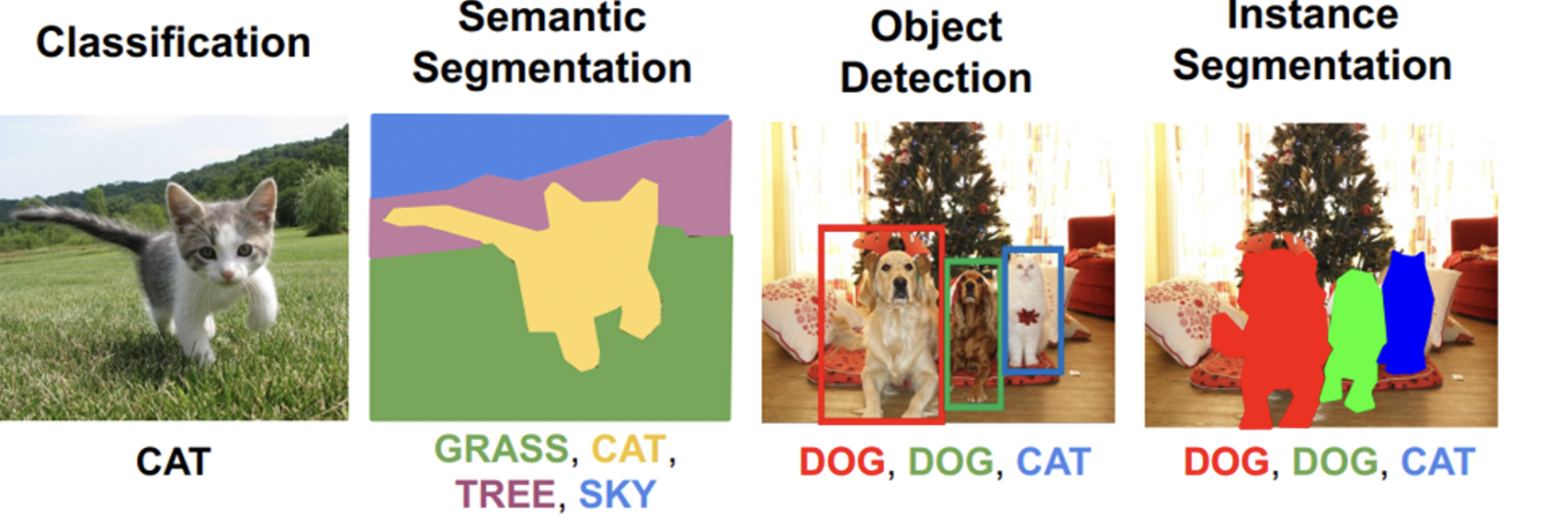 semantic segmentation은 이미지 내에 있는 객체들을 의미 있는 단위로 분할해내는 것이고, instance segmentation 은 같은 카테고리에 속하는 서로 다른 객체까지 더 분할하여 semantic segmentation 범위를 확장한 것