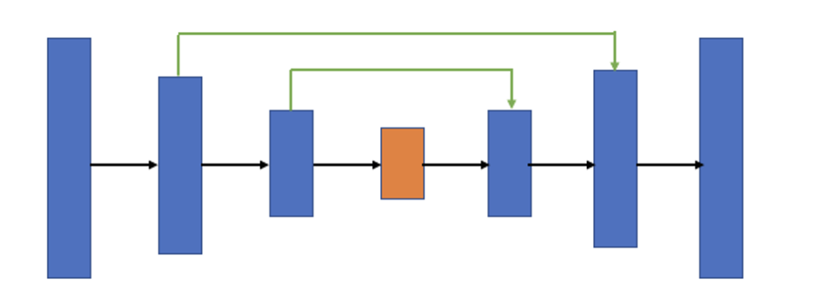 U-Net의 기본 아이디어는 저차원 뿐만 아니라 고차원 정보도 이용하여 이미지의 특징을 추출함과 동시에 정확한 위치 파악도 가능하게 하자는 것이다. 이를 위해서 인코딩 단계의 각 레이어에서 얻은 특징을 디코딩 단계의 각 레이어에 합치는(concatenation) 방법을 사용한다. 인코더 레이어와 디코더 레이어의 직접 연결을 스킵 연결(skip connection)이라고 한다.