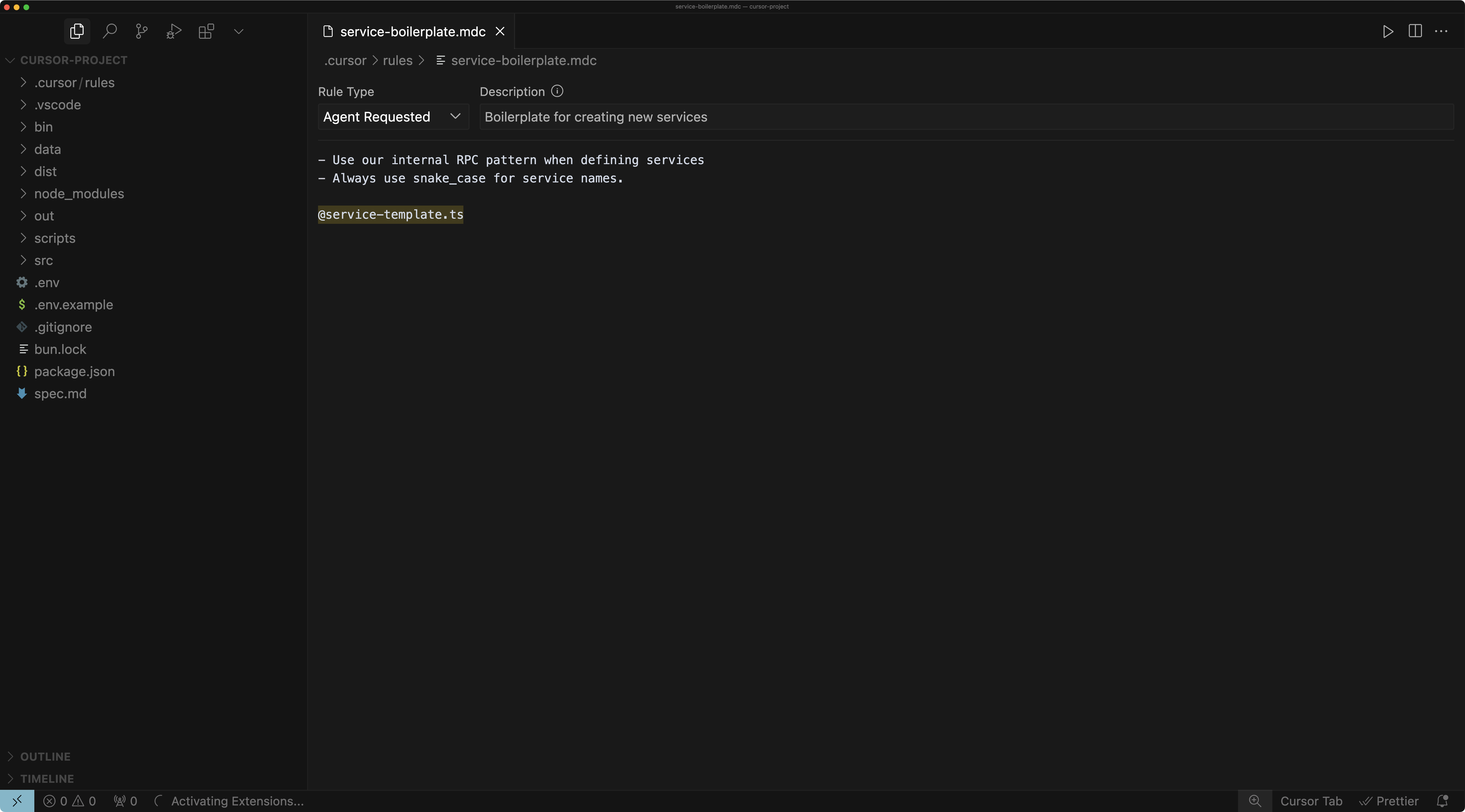 @service-template.ts와 같이 참조된 파일은, 이 규칙이 적용될 때 추가 컨텍스트로 포함됩니다.