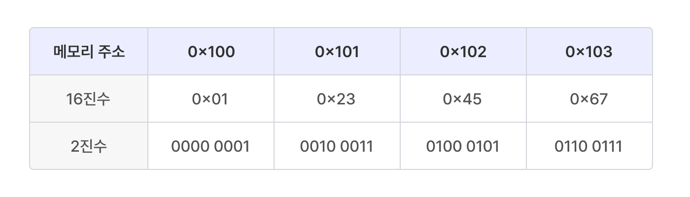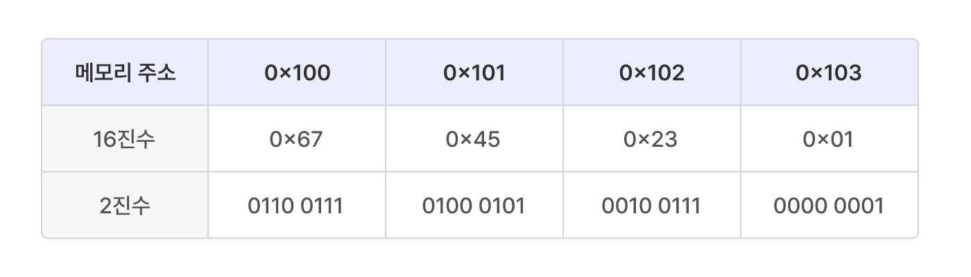 2 바이트 이상의 데이터는 메모리에 연속적으로 될 때 각 바이트가 메모리에 정렬되는 방식을