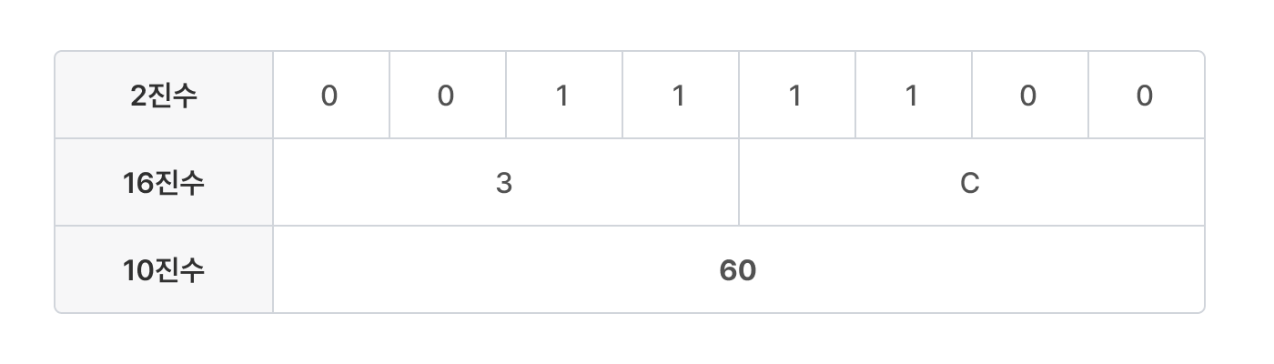 1 바이트는 28=256가지의 수를 표현할 수 있습니다. 10진수로 0~255, 2진수로 00000000~11111111, 16진수로 00~FF까지 나타냅니다.