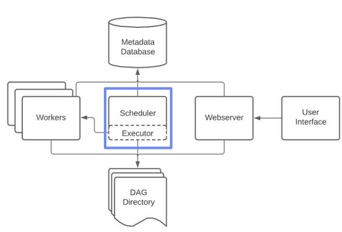 Airflow의 핵심 구성 요소 중 하나. DAGs를 보며 현재 실행해야 하는지 스케줄을 확인