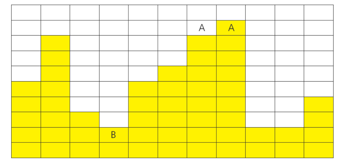 A부분의 상자를 가장 낮은 B부분에 덤프하였으며, A대신 A’부분의 상자를 사용해도 무방하다.