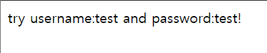 화면에 나온대로 username은 test, password는 test!로 작성해보았다.