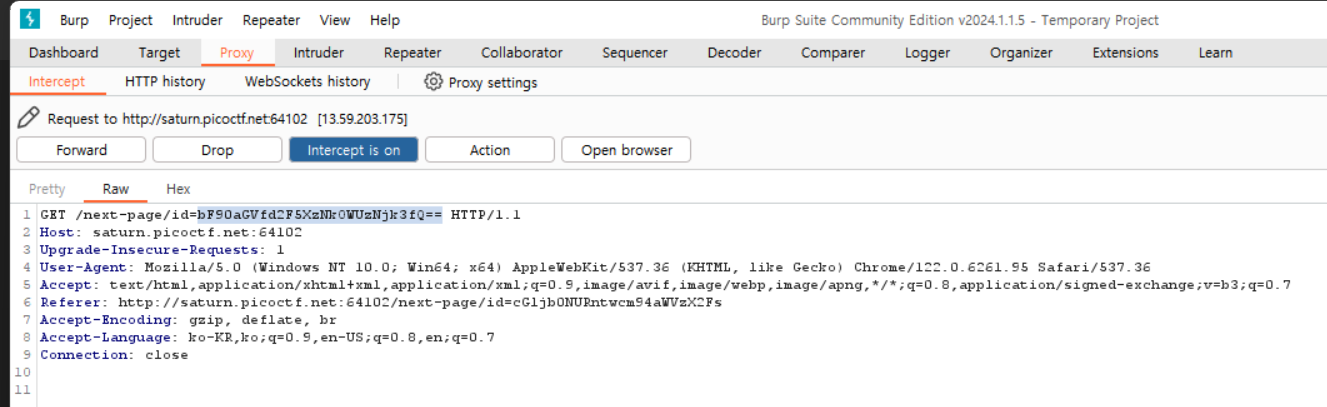 이를 'burpsuite'라는 프로그램을 통해서 intercept해보겠다.