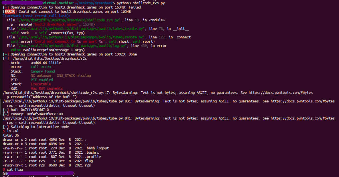 p.recvuntil("Address of the buf: ") //서버로부터 "Address of the buf: "라는 메시지가 나올 때까지 데이터를 받는다.
