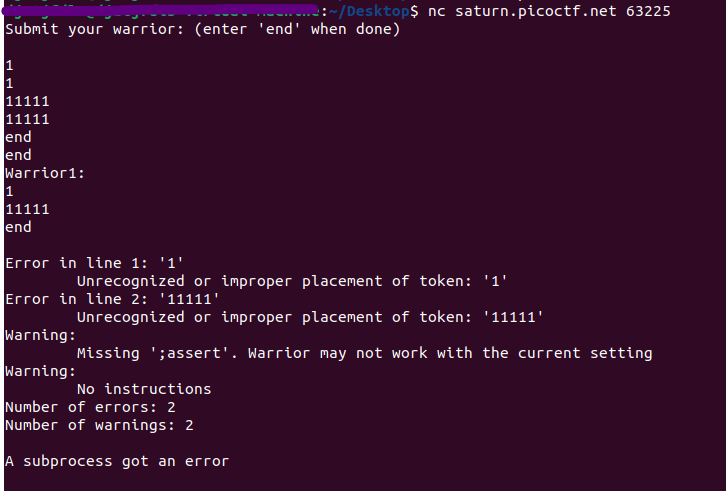 사용자가 입력하는대로 다시 출력하는 형태로 이뤄져있고, 'end'를 입력하면 지금까지 내가 입력한 거에 대해 에러를 출력한다는 것을 확인할 수 있다.