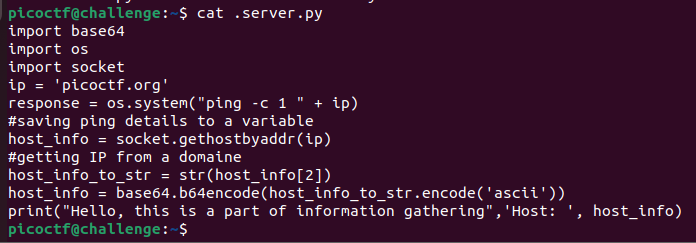 ssh로 접속하여 ls로 현재 페이지 목록을 확인하고, server.py를 실행시켜보았지만, 실행이 되지 않아 cat 명령어로 코드를 확인해보았다. (root 권한밖에 실행시킬 수가 없으므로 picoctf계정으로 들어왔고 root이외에 다른 사용자들은 읽기 권한만 존재하기 때문에 실행할 수 없는 것은 당연하긴하다 ㅎ)