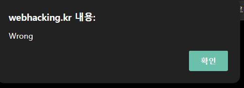 위 캡쳐와 같이 임의값을 입력하면 Wrong 문구가 출력되는 것을 확인하였다.