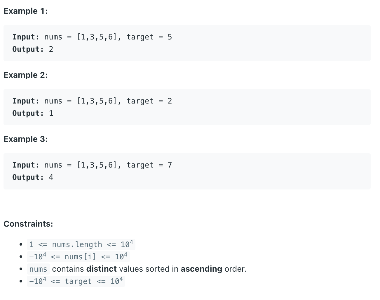출처 : https://leetcode.com/problems/search-insert-position/