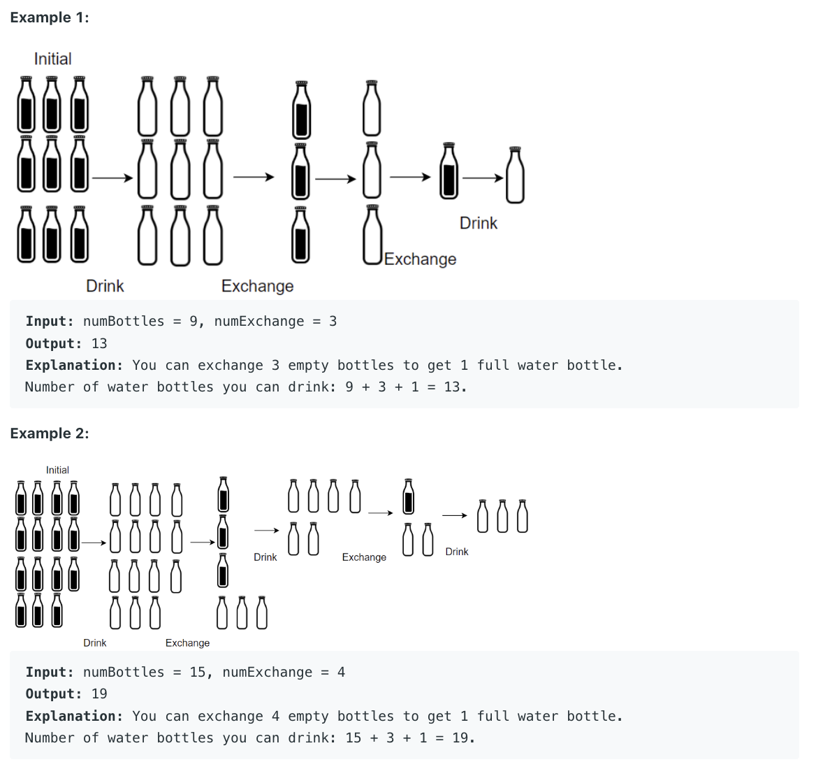 Given the two integers numBottles and numExchange, return the maximum number of water bottles you can drink.