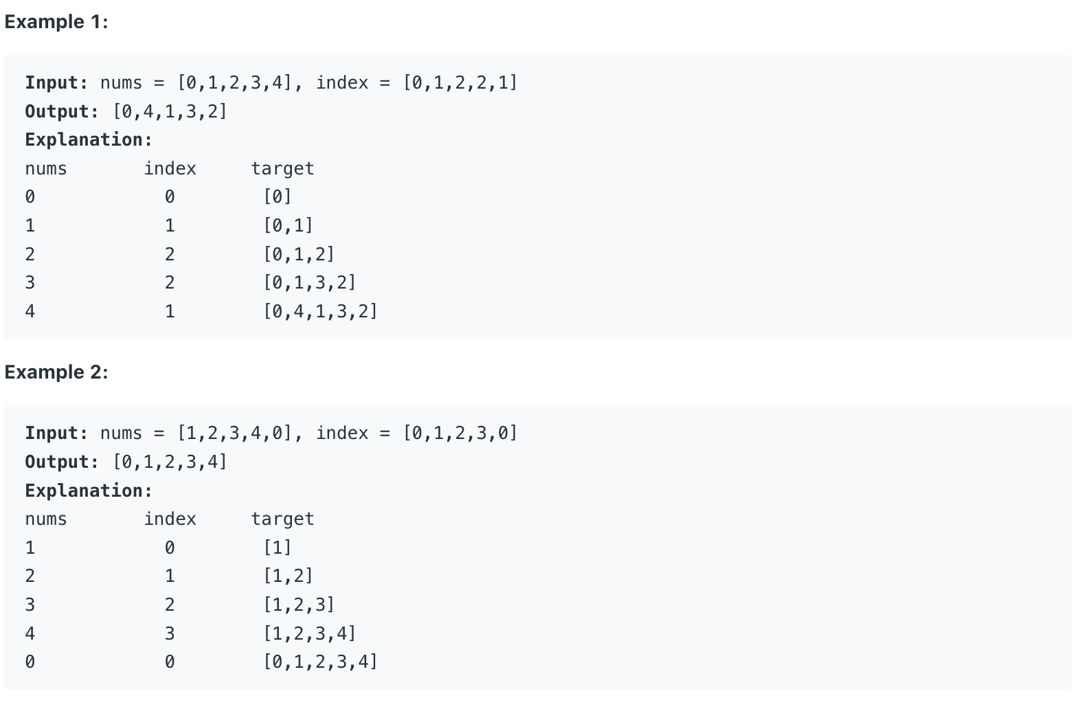 출처 : https://leetcode.com/problems/create-target-array-in-the-given-order/