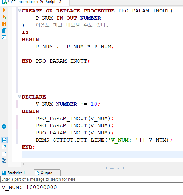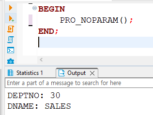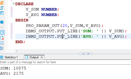 END PRO_PARAM_OUT; --프로시저명 꼭 같이 입력해줘야함