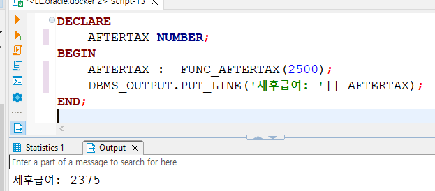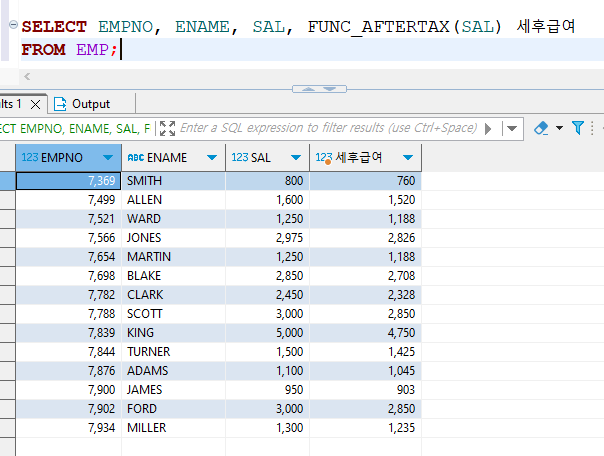 FUNCTION FUNC_AFTERTAX(P_SAL NUMBER) RETURN NUMBER