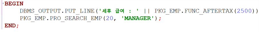 DROP PACKAGE 패키지명; -> 패키지 명세 + 패키지
