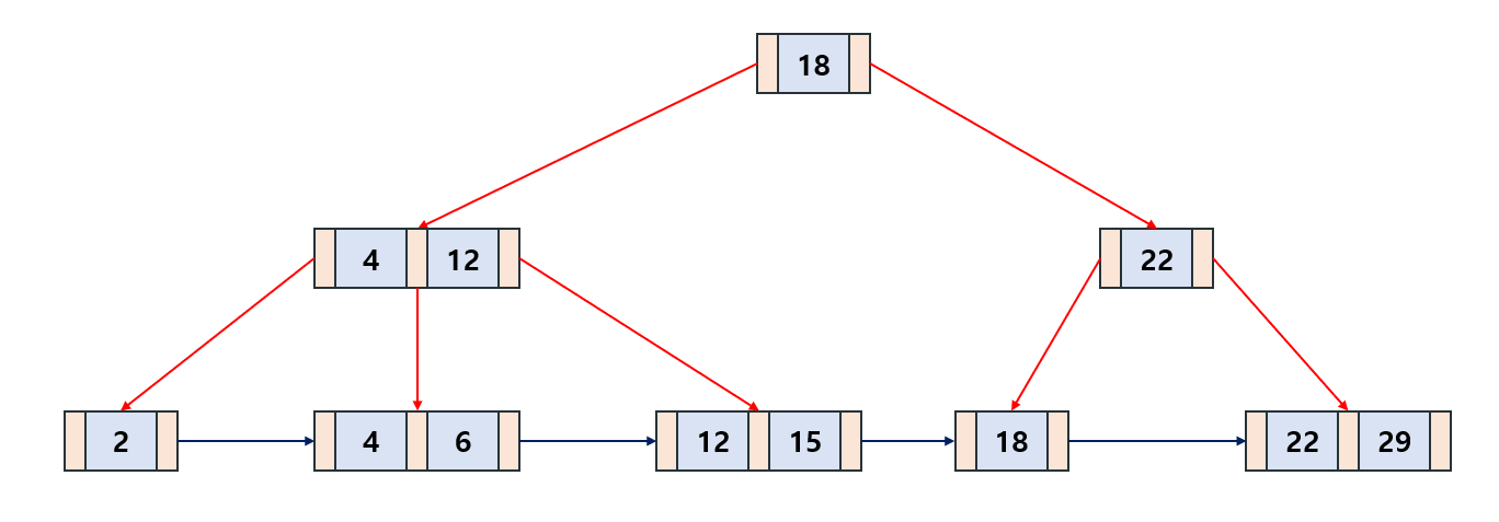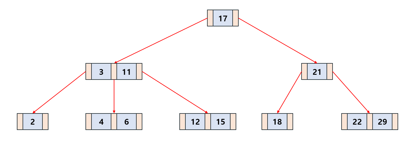 인덱스를 key의 tree형태로 구현하기 위해 사용되는 자료구조. 트리의 각 노드에 여러 개의 key를 저장.