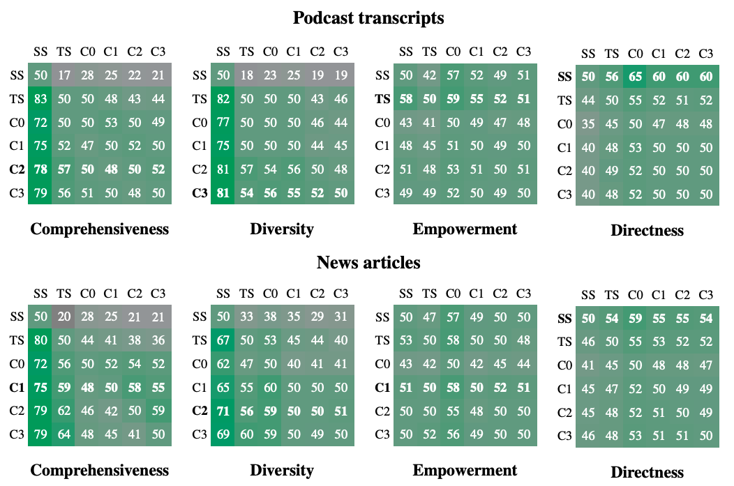 - Diversity (다양성): 다양한 관점과 정보를 제공하는가?