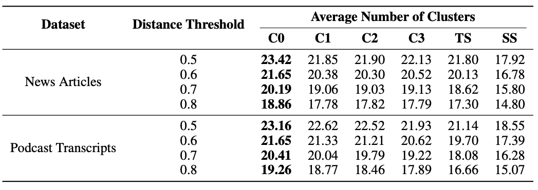 - 응답에서 고유 주장을 추출하고 고유 주장들을 유사도 기준으로 클러스터링한 결과를 사용