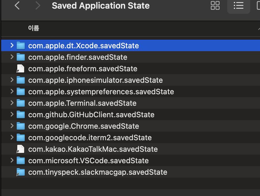 'com.apple.dt.Xcode.savedState' 폴더를 삭제하기