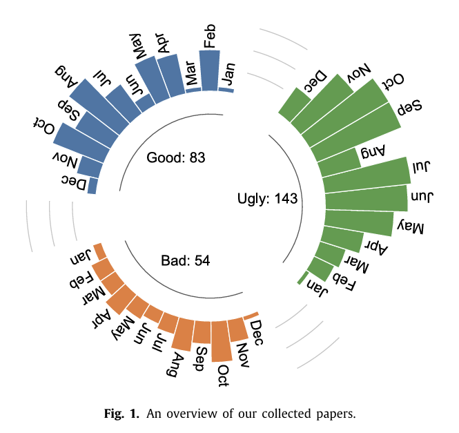 Fig1은 LLM+Security 관련 논문들을 위의 잣대를 기준으로 Google Scholar와 Compiled 페이퍼에서 조사한 결과이다.