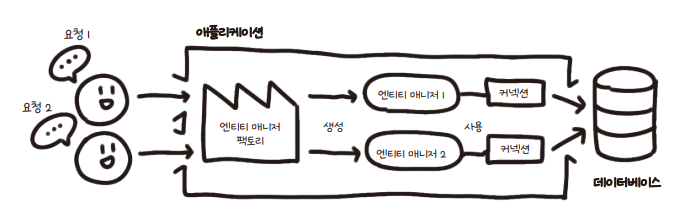 필요할 때 데이터베이스 트랜잭션과 관련된 실제 엔티티 매니저를 호출한다.