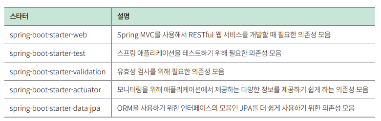 스프링 부트 스타터는 의존성이 모여 있는 그룹이다.