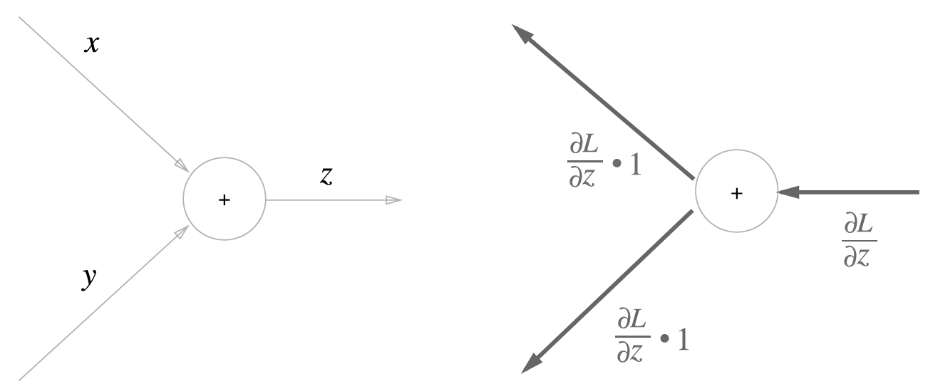 따라서 역전파 때는 에 1을 곱하여 흘린다.