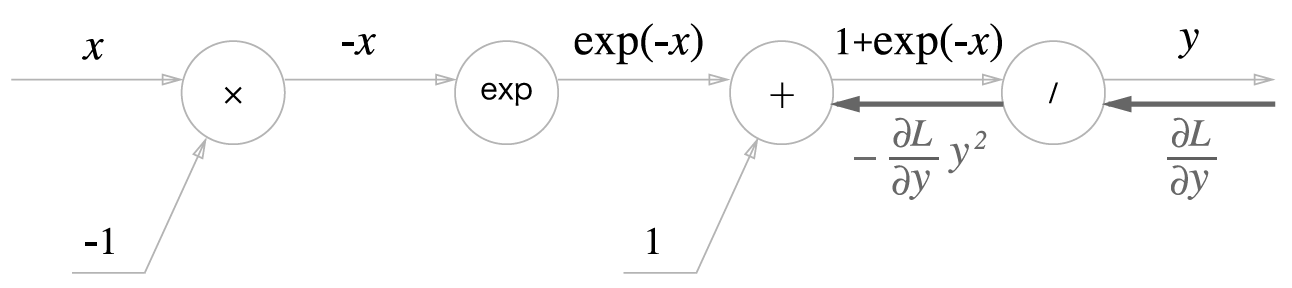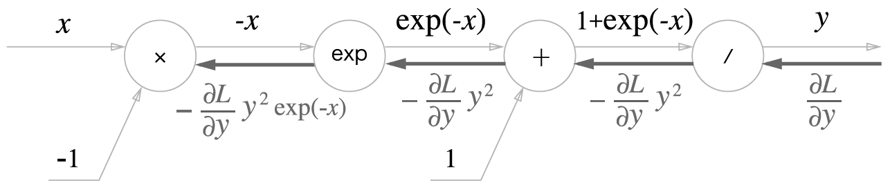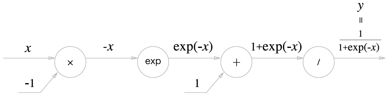 ex> 입력에 국소적 미분인 를 곱하고 다음 노드로 넘긴다.
