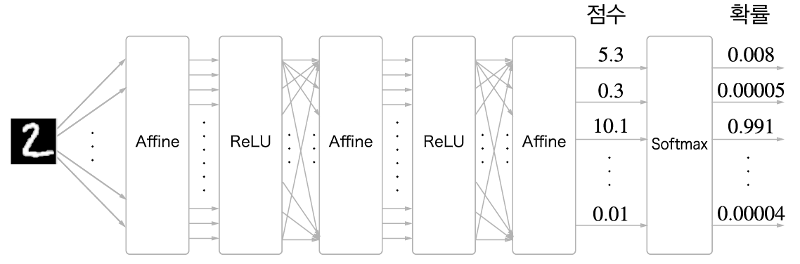 1) 생성자에서 1> Affine1, 2> Relu1, 3> Affine2, 4> SoftmaxwithLoss 계층을 만든다.