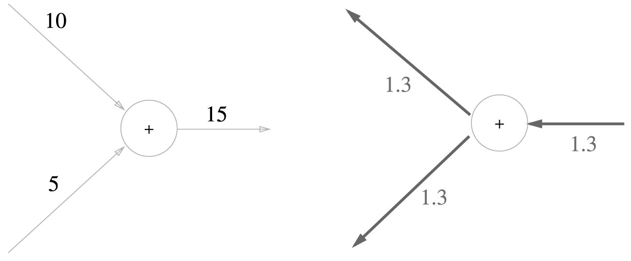 즉 덧셈은 입력된 값을 그대로 다음 노드로 보낸다.