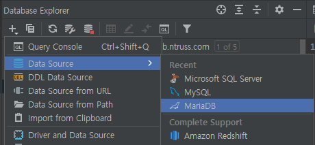 MariaDB ๋ฐ์ดํฐ ์์ค๋ฅผ ์์ฑํ๊ณ , ์ ์ํ Host๊ณผ port, ์กฐ๊ธ ์ ์ ์์ฑํ user์ password, ๊ทธ๋ฆฌ๊ณ ์ฌ์ฉํ database ์ด๋ฆ์ ๊ฐ๊ฐ ์ ๋ ฅํ์ฌ DB Connection์ ์งํํด๋ด ์๋ค.