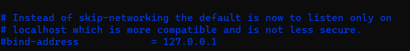 $ sudo vim /etc/mysql/mariadb.conf.d/50- server.cnf
