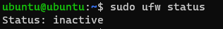 ํ์ฌ ๋ฐฉํ๋ฒฝ ์ํ๋ฅผ ํ์ธํด๋ณด๋ฉด inactive ์ํ์ธ ๊ฒ์ ์ ์ ์๋๋ฐ์. ์ฐ๋ถํฌ์์ ๊ธฐ๋ณธ์ ์ผ๋ก ์ ๊ณตํ๋ ๋ฐฉํ๋ฒฝ์ธ UFW(Ubuntu Firewall)์ ๊ธฐ๋ณธ์ ์ผ๋ก ๋นํ์ฑํ ๋์ด ์๊ธฐ ๋๋ฌธ์ ufw enable ๋ช