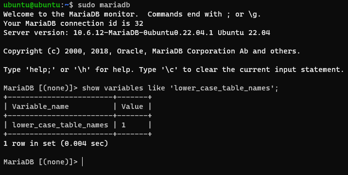db์ ์ ์ํด์ > show variables like 'lower_case_table_names'; ๋ช