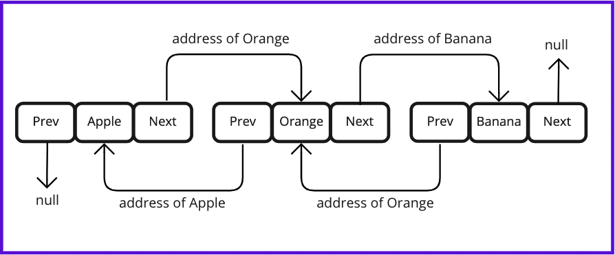 객체가 저장될 때, 바로 앞과 뒤의 주소값을 참조하고 생성된다.