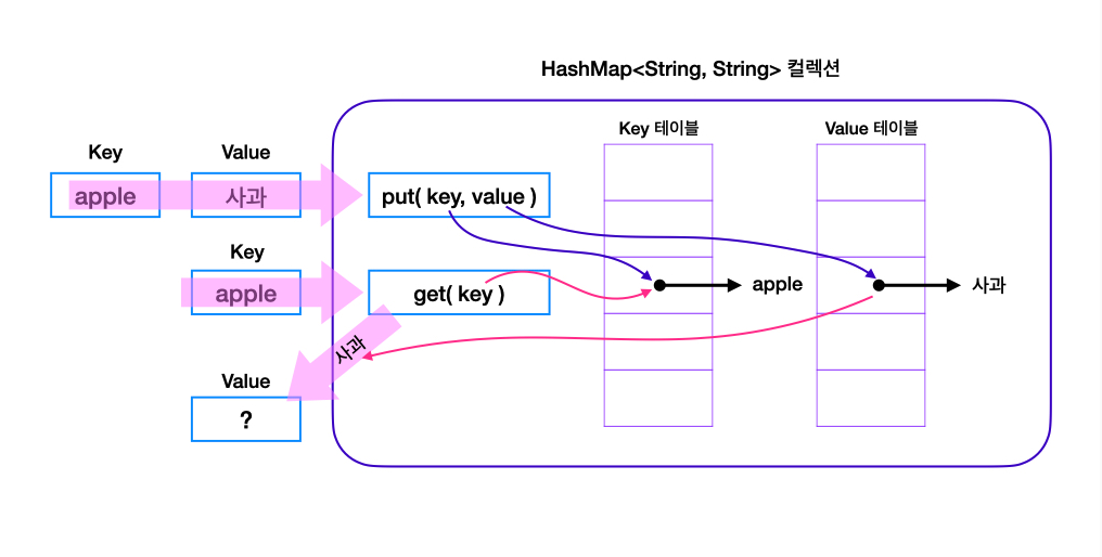여기서 이 객체를 Entry객체라고 하는데, 이 Entry 객체는 키와 값을 각각 Key 객체와 Value 객체로 저장합니다.