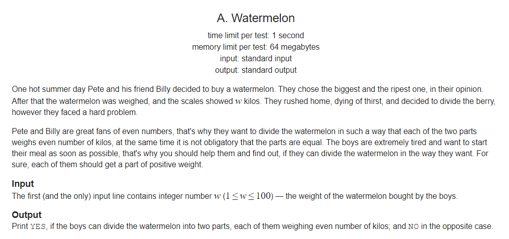 문제: https://codeforces.com/problemset/problem/4/A