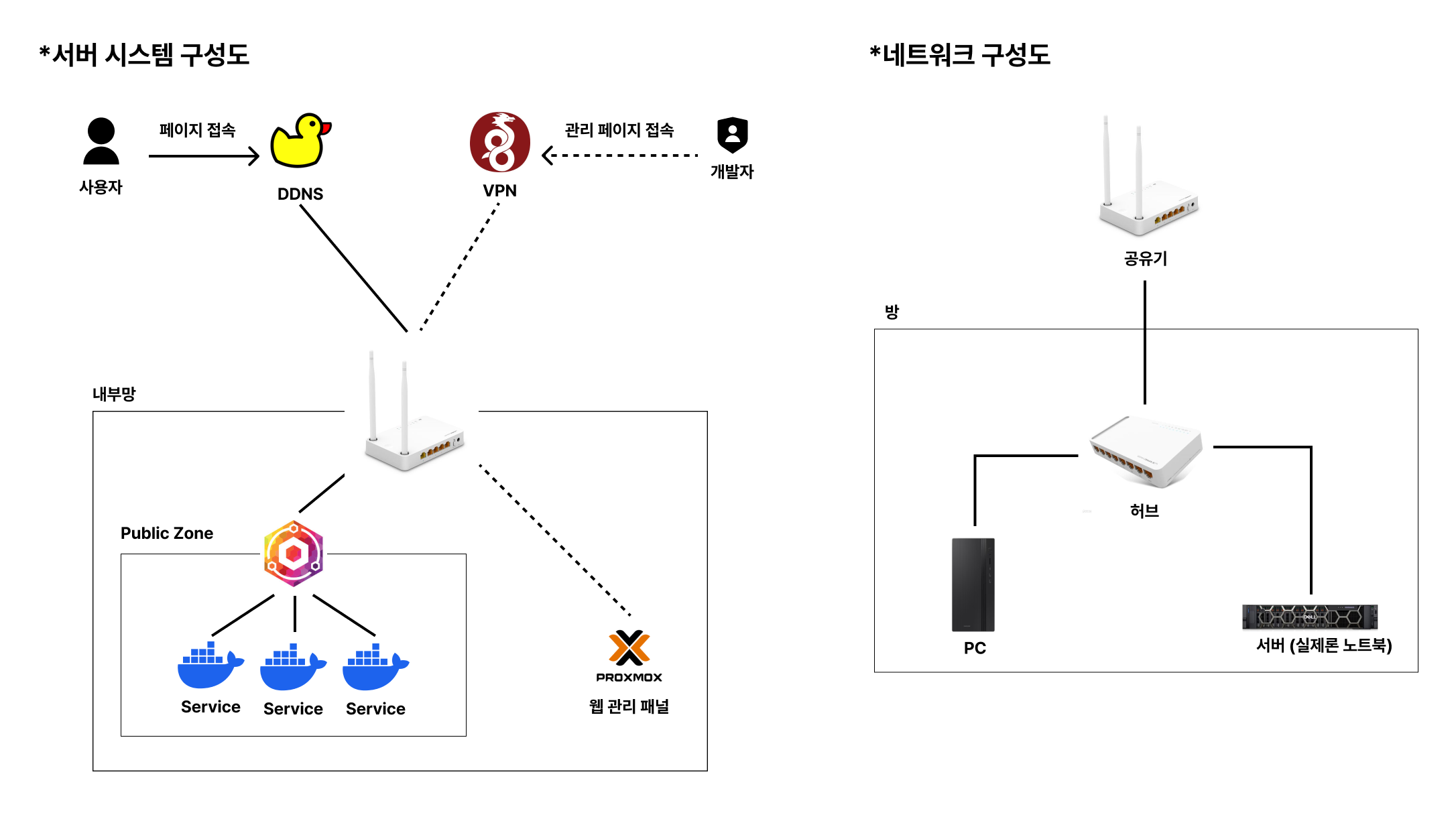 (사실 SSH 접속이 제일 간단하지만, 지식이 부족한 상황에서 빠르게 구축해야 하다 보니 어쩔 수 없이 VPN과 웹 관리 패널을 통한 관리 방식을 선택했습니다.)