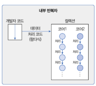2. 병렬 처리에 효율적이다. - 내부 반복자는 멀티 코어 CPU를 최대한 활용하기 때문에